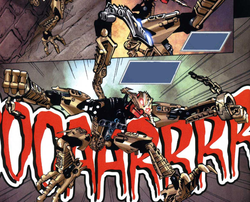 Six Vorox ont tendu une embuscade à Gresh et Berix tandis qu'ils voyageaient dans les terres sauvages, obligeant le duo à se réfugier dans les ruines d'une vieille arène. Un des Vorox a, par la suite, creusé un tunnel jusque dans l'arène et a attaqué Gresh, mais il a été effrayé par un mannequin d'entraînement. Quand le soleil s'est couché, les Vorox ont encore essayé d'attaquer l'arène, rencontrant plusieurs mannequins installés par Gresh et Berix. Les six Vorox, terrifiés par les mannequins, se sont enfuis dans les sables.