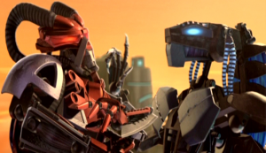 « Comme c'est pratique. Vous êtes venus à nous, au lieu de nous obliger à vous pourchasser. Pour cela, vous avez la gratitude de Sidorak, Roi de la Horde Visorak. »